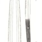 Drei kleine Kirikomi, ca. 30 bzw. 35 cm von der Spitze entfernt. Zwei dicht beieinander liegende im Winkel von 34 Grad, ein größeres, ca. 3 mm Länge und ein kleineres, ca. 1 mm Länge, 6 cm weiter oben befindet sich ein weiteres, ca. 1 mm Länge im Winkel von 45 Grad, spiegelbildlich zu den anderen beiden.