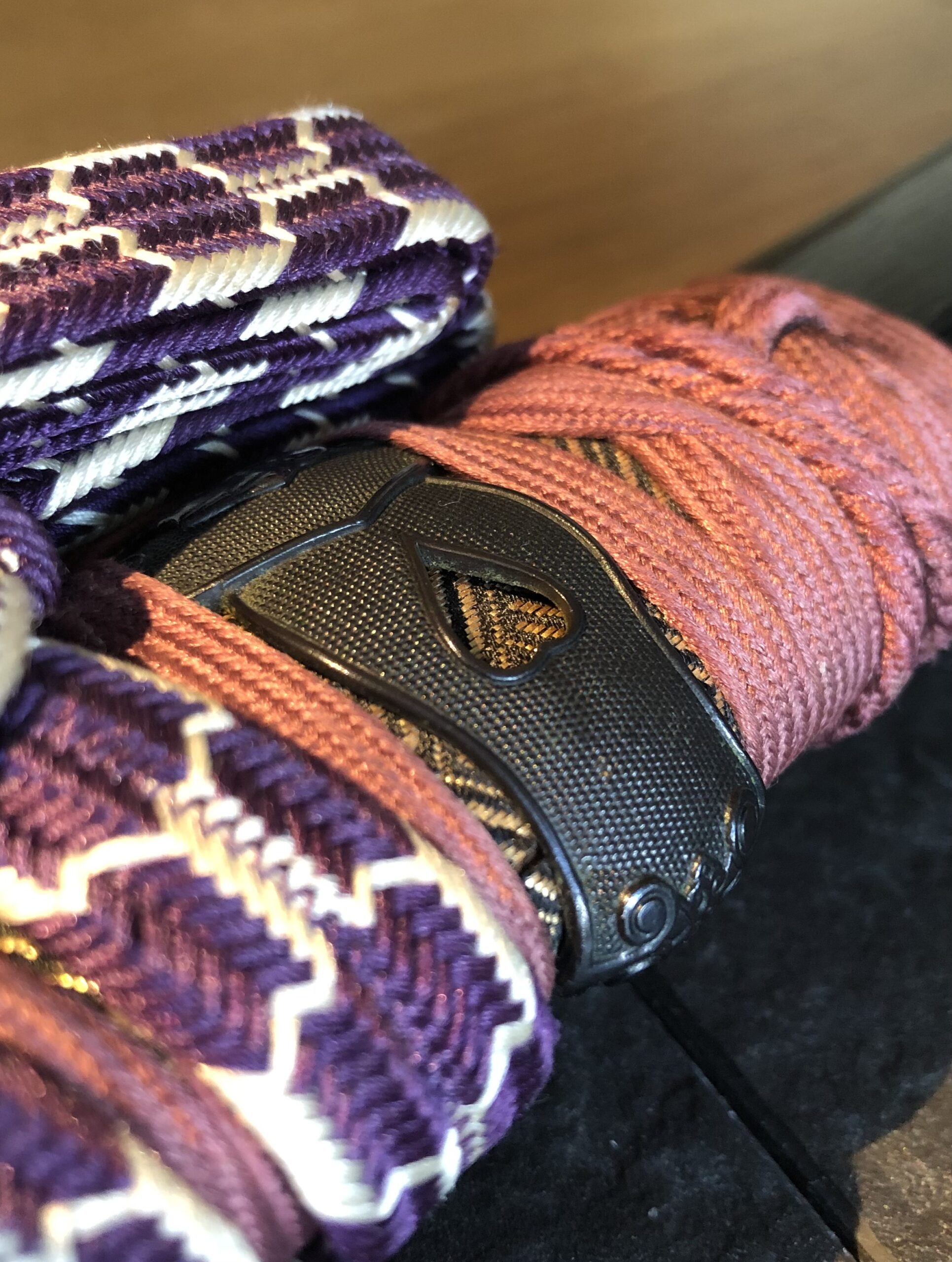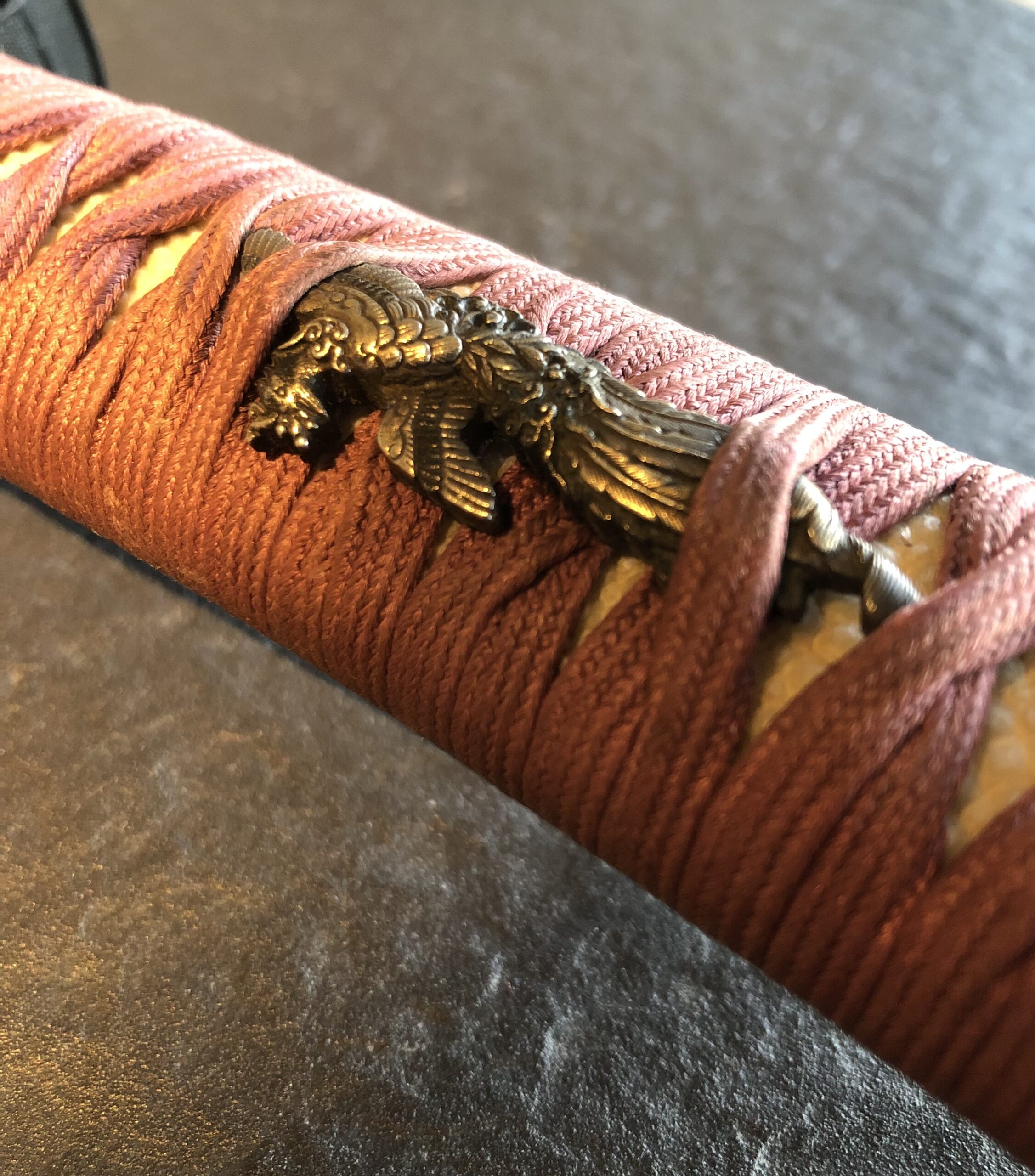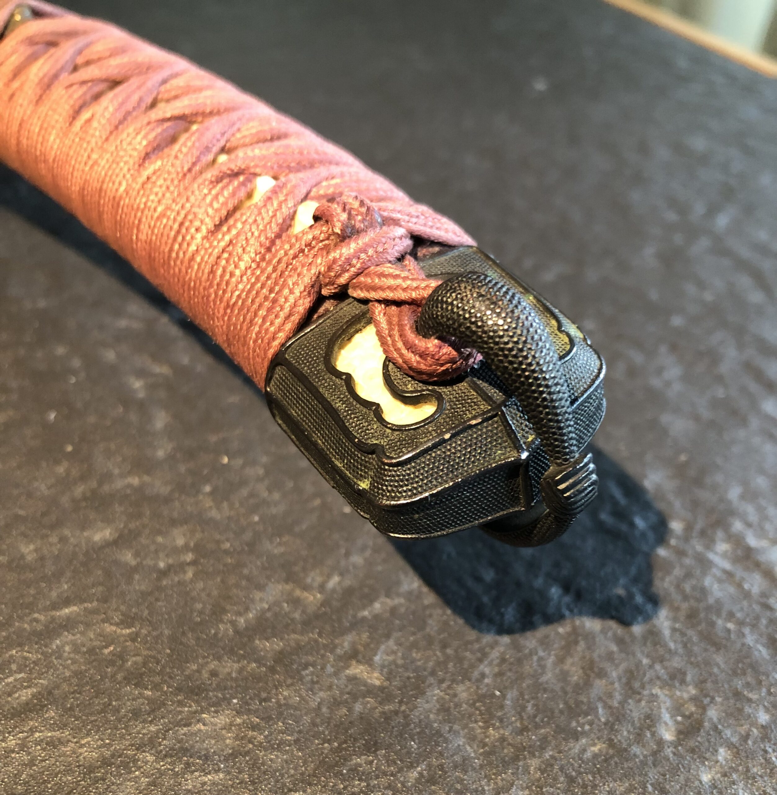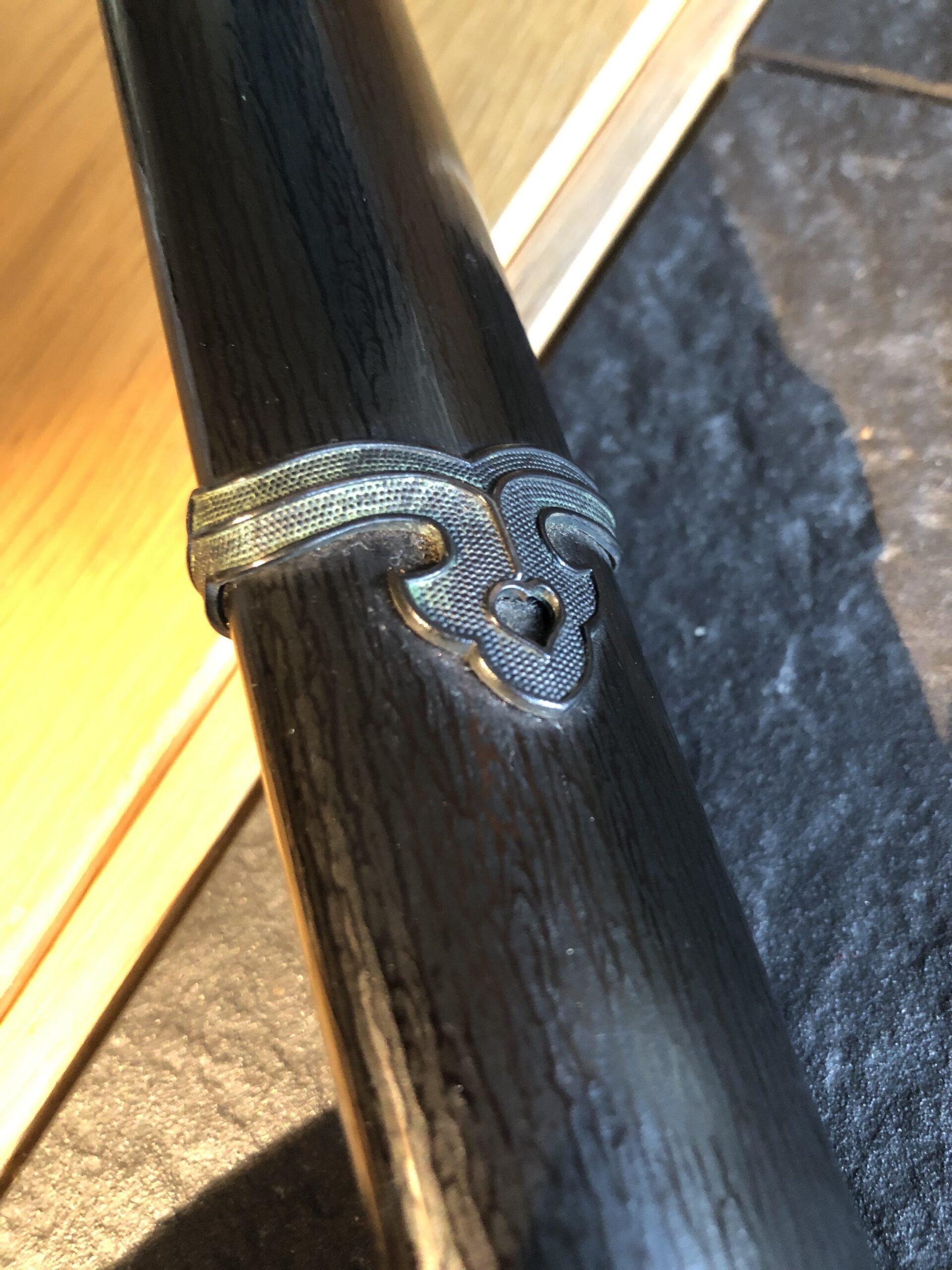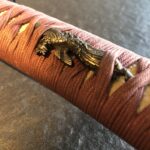 Zu dem Schwert gehört ein geschmackvolles „En Suite“ Itomaki No Tachi Koshirae, es stammt vermutlich aus der Edo-Zeit. Die Kodogu sind aus Shakudo mit Nanako und tragen goldenen Kiri-Mons auf dem Tsuba und auf den Sarute, auf dem Tsuka sind dazu passende Phönix-Menuki angebracht (der mythische Phönix lebt nur auf dem Kiri-Baum). Das Kiri-Mon gehörte früher zur Kaiserlichen Familie.