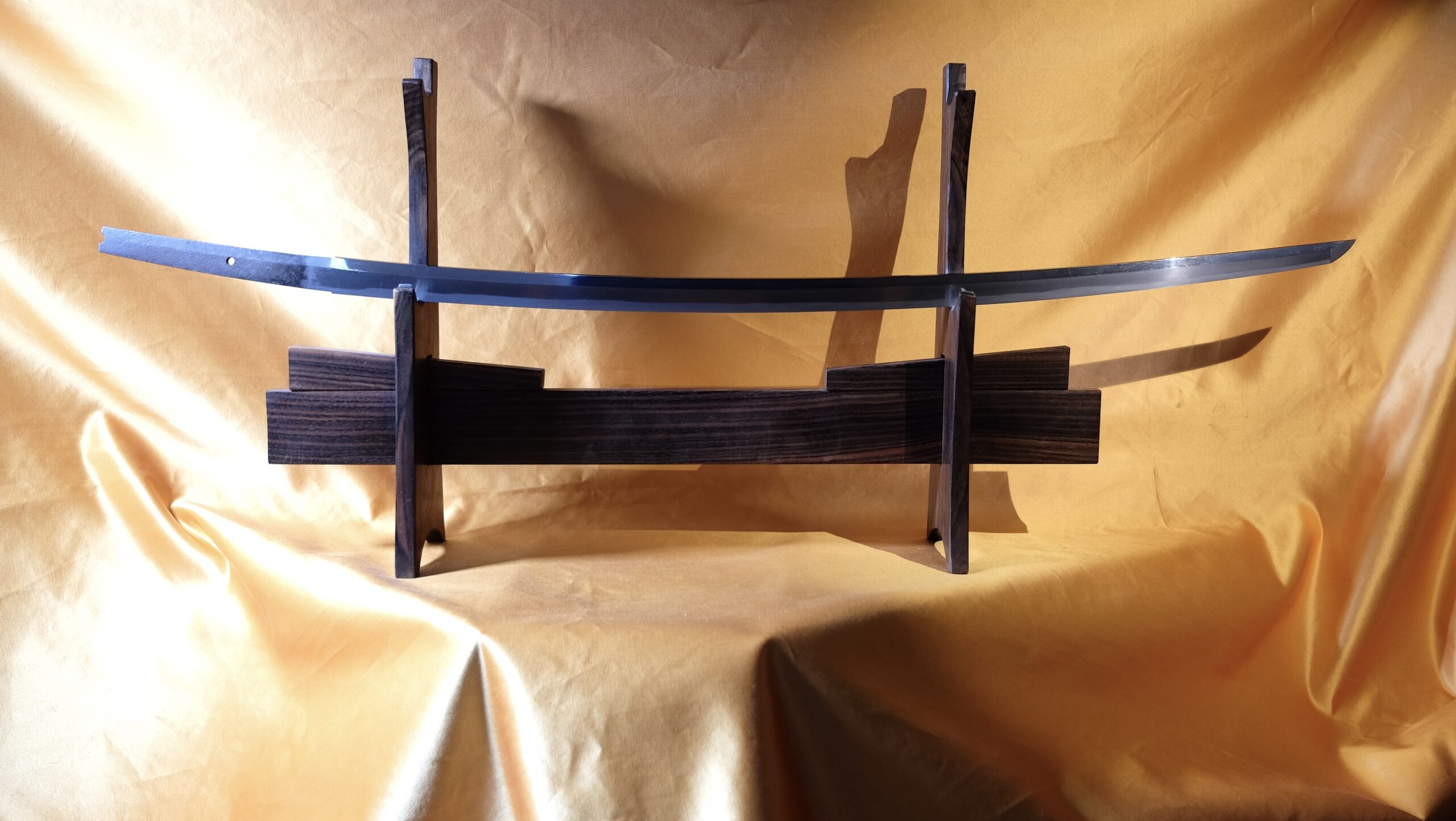 Hintergrund: Die frühen Yamashiro Schulen bezeichnen sich nach der Lage ihrer jeweiligen Werkstätten in Kyoto: Sanjo, Gojo, Awataguchi und Ayanokoji. Die spätere Rai Schule folgt dem Namen ihres Gründers Kuniyuki. Die frühen Kyoto’er Klingen aus der späten Heian- und frühen bis mittleren Kamakura Zeit, die „Ko-Kyo-Mono“, weisen viele Ähnlichkeiten untereinander auf, individuelle Elemente in der Ausführung und die Sugata erlauben dennoch eine Zuordnung zur Schule und zur Herstellungszeit. Nach einer konservativen Phase, welche bis in die frühe bis mittlere Kamakura Zeit andauerte, folgten die meisten Kyoto-er Schulen dem neuen Geschmack der Krieger-Elite. Ayanokoji Klingen allerdings zeigen weiterhin den traditionellen Stil, der an die Sanjo und Gojo Arbeiten anschließt, welche für den Geschmack des kaiserlichen Adels gearbeitet haben. Von ihnen folgten keine „moderneren“ Klingen mehr nach. Mit dem rasch wachsenden Einfluss der Daimyos ab der Mitte der Kamakura-Zeit wurde der traditionell elegante und zurückhaltende Stil vollends aufgegeben zugunsten des Geschmacks der neuen Samurai-Elite mit dem Wunsch nach imposanteren, auffälligeren Klingen. Der traditionelle Ayanokoji Stil war vielleicht der letzte der „Ko-Kyo-Mono“, danach dominierte der neue Rai- und Awataguchi-Stil und die alten Ko-Kyo-Mono wurden zu Familienschätzen der Samurai. Vielleicht, weil sie die Nobilität und Eleganz einer untergegangenen Epoche verkörperten, deren Stil man bewunderte, deren Schwerter jedoch nicht mehr zur neuen kriegerische Epoche der Selbstpräsentation passten.